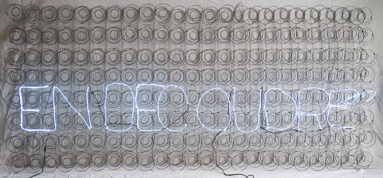 Néon, transformateurs, programme pour l’apparition évanescente des mots constituant “Knowhere”