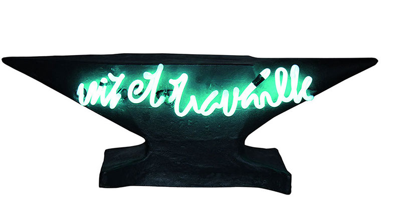 Néon clignotant, sur acier verni et plié