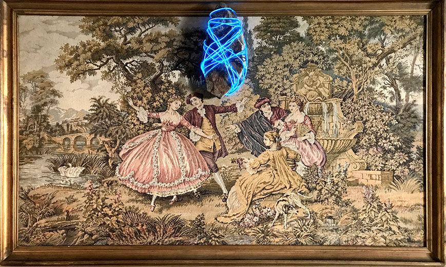 Technique mixte, sommier et fil électroluminescent