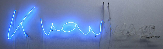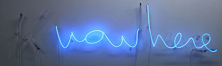 Néon, transformateurs, programme pour l’apparition évanescente des mots constituant “Knowhere”