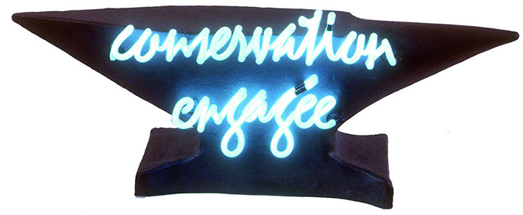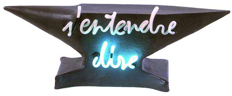 Néon clignotant, sur acier verni et plié