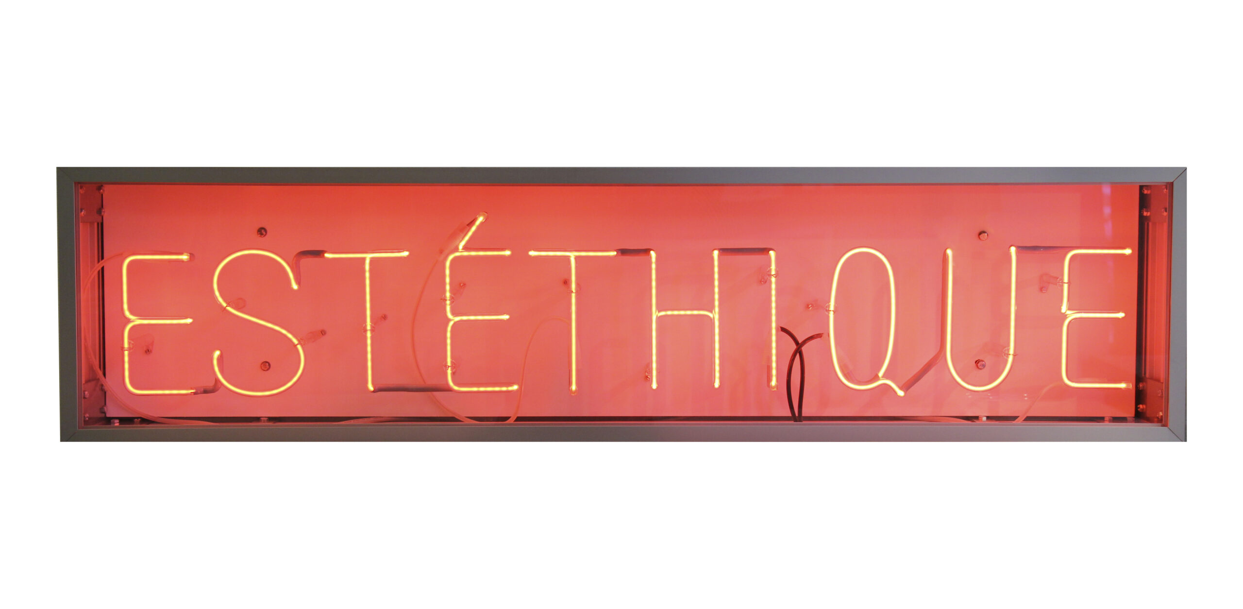 La fatigue du papier n° 80 Technique mixte, terre cuite émaillée et néon 16,5 x 49 x 15,5 cm